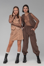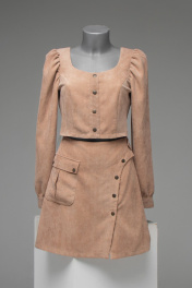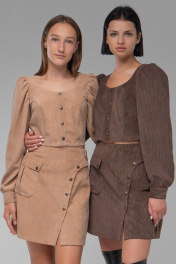 Юбка из вельвета длиной 45 см с отделкой из кнопок AVEEVA 5332 темный_бежевый