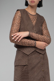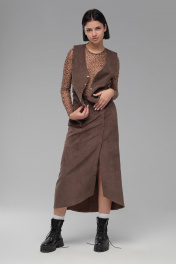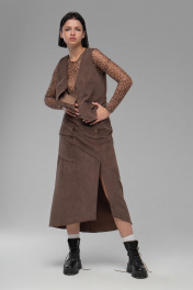 Длинная юбка из вельвета по среднему шву 90 см с кнопками AVEEVA 5333 шоколадный