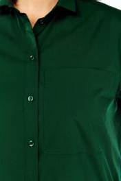 Рубашка свободного кроя, в стиле оверсайз. Силуэт свободный. На переде слевой стороны карман. По боковым швам разрезы. Рукав рубашечный с разрезом и складками,заканчивается манжетой, которая застегивается на 3 петли и пуговицы.Плечо спущенное. Боковой сделан на 3см на запах,поэтому разрез не расходится.Длина по спинке-79см, длина рукава+манжета-63см, длина плеча-17 длина разреза-26см. Параметры модели: обхват груди-98см, обхват бедер-110см, размер изделия на модели 50.