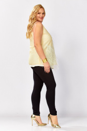Топ на бретелях полуприлегающего силуэта. Топ состоит из двух топов: верхний выполнен из сетки с вышивкой с пайетками, нижний из однотонной вискозы(штапель). Перед покроен по косой. Бретели регулируются. Каждый из топов можно носить по отдельности и комбинировать с другими предметами гардероба. Длина по боковому-45см.Параметры модели: обхват груди-108см, обхват бедер-114см, размер изделия на модели 54.