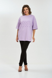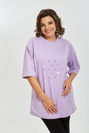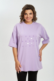 Майка свободного силуэта, со спущеным рукавом. Рукав короткий, чуть ниже локтя. По центру переда декор из крупных пайеток. Длина плеча-21,5см, длина рукава-29см, длина по спинке-82см. Параметры модели: обхват груди-98см, обхват бедер-110см, размер изделия на модели 50.