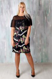 Черное платье с цветочной вышивкой и фатином Avila 0563 черный