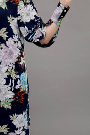 Элегантное платье прямого силуэта с вырезом горловины "лодочка". Платье в принт цветы. Оригинальный покрой рукава, открывающий руку и заканчивающийся длинным манжетом. Такой фасон платья прекрасно подойдет для вечернего выхода.