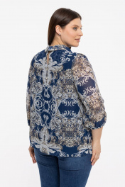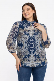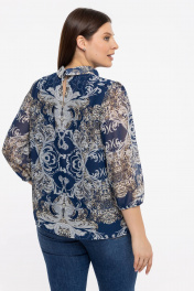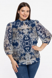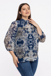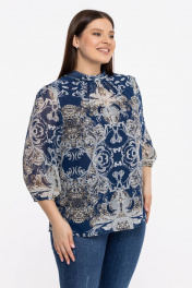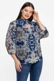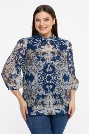 Блуза из шифонового полотна с воротником-стойкой Avila 0822 бежево-синий