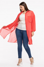 Блуза-рубашка из шифона и текстиля с рукавом 7/8 Avila 0955 коралловый