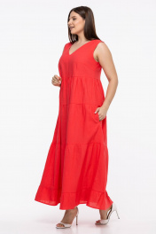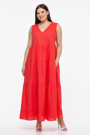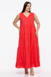 Платье-сарафан яркого цвета из льна - это стильное и удобное летнее платье без рукавов, свободного кроя. Оно имеет длинную юбку, которая создает легкий и воздушный образ. Наличие воланов добавляют ему женственности и изящности. Такое платье идеально подойдет для жаркого летнего дня, оно будет комфортным и стильным выбором для прогулок по городу или отдыха на природе.