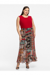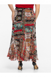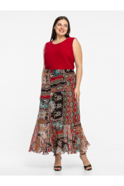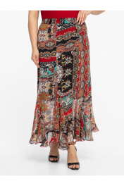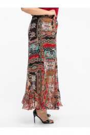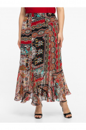 Добавьте красок в свой гардероб с нашей эффектной юбкой с принтом пейсли. Эта модель — идеальное сочетание женственности и комфорта. Крой «годе» с мягким воланом по низу создает летящую походку и красиво играет при каждом движении. Эластичный пояс (мягкая резинка) обеспечивает идеальную посадку на любую фигуру, не пережимая талию.