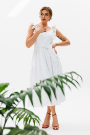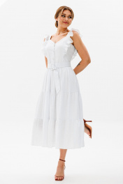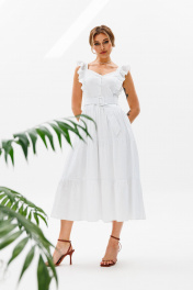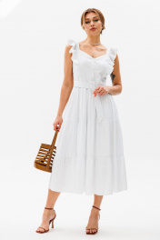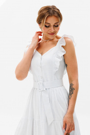 Летнее платье-сарафан из льна с рюшами и отрезной талией AVRIL 1012 белый