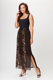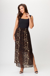Бежево-коричневая шифоновая юбка в пол с разрезом AXXA 3008 А