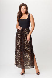 Женская летняя юбка в пол - это идеальный выбор, кто ценит комфорт и стиль в одном образе. Длинный макси-силуэт создает элегантный воздушный образ, благодаря тонкой шифоновой юбке на подкладке. А ультрамодный животный черно-бежевый принт придает особую изюминку вашему гардеробу, позволяя благодаря такой расцветке, носить эту юбку, создавая модные луки не только летом, но и осенью, и весной, сочетая с объемными свитерами или кожаными куртками. Эта юбка с поясом на широкой резинке, длинная с боковым разрезом. Необычный и стильный винтажный крой делает ее универсальной - она подойдет как для молодежного, спортивного, так и для классического образа. Подчеркните свою женственность и элегантность этой прекрасной милой шифоновой юбкой от бренда «АХХА». _____________________________________ Длина юбки 96 см Высота пояса 6 см