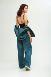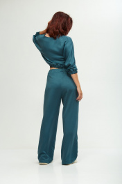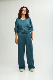 Этот стильный комплект идеально подходит для девушек стремящихся к комфорту и моде! Он выполнен из мягкого, уютного сатина, приятного к телу, не мнется, что позволит сохранить опрятный вид в течении дня. Комплект состоит из широких брюк и укороченного бомбера на молнии, декорированного накладными карманами. Свободные брюки с поясом на резинке в стиле палаццо визуально стройнят и вытягивают фигуру, а также обеспечивают свободу движения и удобство. В боковых швах брюк выполнены удобные функциональные карманы. Молодежный костюм идеально подойдет для дома, а также прогулок и отдыха с друзьями, идеальный вариант для путешествий. Не упустите возможность выглядеть стильно и элегантно в любой ситуации. ________________________________________ Длина бомбера 50 см Длина брюк + пояс 111 см.