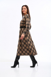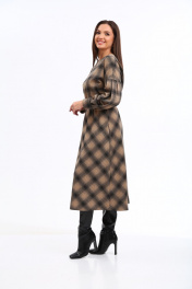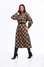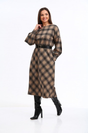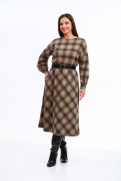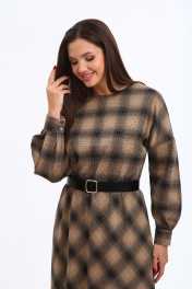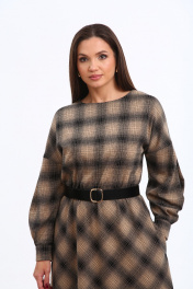 Уютное трикотажное платье в клетку с 3D эффектом в трендовой расцветке, безусловно, станет фаворитом в Вашем гардеробе. Изделие выполнено из высококачественного турецкого, приятного к телу вискозного трикотажа. Платье А-образного силуэта, отрезное по линии талии. Рукава спущенные с активными защипами, полной длины, с притачными манжетами с застежкой на петли-пуговицы. Горловина мягкой округлой формы. Нижняя часть платья покроя трапеция. В боковых швах предусмотрены функциональные карманы. В области талии платье присобрано на эластичную тесьму. Платье дополнено стильным съёмным ремнем. Данное изделие легко можно использовать в повседневной жизни – оно также идеально впишется в деловой образ современной женщины. _______________________ Длина рукава (от горловины) 73 см Длина изделия по спинке 118см.