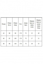 В этом году кюлоты бьют рекорды по популярности и становятся самыми модными брюками года! Именно свободные брюки-кюлоты могут подчеркнуть достоинства Вашей фигуры. Кюлоты можно смело носить с топами, жакетами и блейзерами, с которыми они станут суперэлегантными. А с простыми футболками, объемными пуловерами создадут более спортивный образ. Представленная модель выполнена на притачном поясе, длина за колено. Застежка типа «гульфик» на петлю – пуговицу. В боковых швах расположены функциональные косые карманы. По передней и задней половинке изделия расположены застроченные стрелки. Модные кожаные кюлоты— это та самая крутая базовая вещь для создания модного образа Вашего гардероба. Длина брюк 70 см