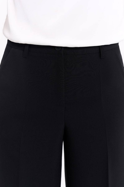 Брюки (длина брюк - 106 см, длина по внутреннему шву - 81,5 см, ширина по низу: 42р-28,5 см, 44р-29,5 см, 46р-30,5 см, 48р-31,5 см, 50р-32,5 см, 52р-33,5 см) - брюки на поясе с центральной застежкой на петли и пуговицы с гульфиком на тесьму-молнию; - на поясе по спинке резинка; - средняя посадка брюк, прямые от бедра до низа; - в боковых швах обработаны карманы с отрезными бочками