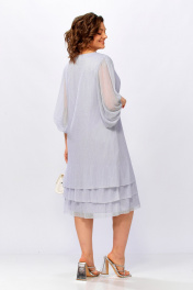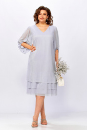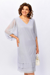 Платье женское, нарядное из тонкого плиссированного трикотажного полотна с лёгкой люрексовой ниткой. Полуприлегающего силуэта, свободное, слегка расширенное к низу, с V-образным вырезом горловины, рукав широкий со сборкой по верхней и нижней части, по низу изделия воланы. Платье на подкладке. ОГ (50):54см (52):56см (54):58см (56):60см (58):62см (60):64см ОБ (50):57см (52):59см (54):61см (56):63см (58):65см (60):67см 104-105см