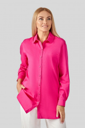 Блузка женская свободного покроя, удлиненная с рубашечным рукавом на манжете по низу,по переду на уровне груди -накладной карман ,застежка спереди на планку с пуговицами ,воротник рубашечный на стойке,низ изделия-фигурный,с закругленными разрезами по боковым швам. Ширина по линии груди блузка(42):54см блузка(44):56см блузка(46):58см блузка(48):60см блузка(50):62см блузка(52):64см Ширина по линии бедер блузка(42):55см блузка(44):57см блузка(46):59см блузка(48):61см блузка(50):63см блузка(52):65см Длина изделия 79,5см Длина рукава 57см