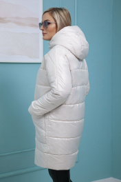 Пальто стеганное из плащевой ткани с пропиткой, укороченное, силуэта «баллон», со спущенной проймой с капюшоном, застежки спереди на молнию, по переду - накладные карманы. Изделие на подкладке. Перед и спинка 200г/м2 Рукав 150г/м2 Рекомендуемая температура +5-10