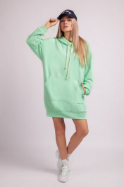 Платье спортивное из трикотажного полотна с капюшоном,о спущенной проймой рукав с манжетой по низу,по -переду -накладной карман ,по -низу изделия -манжета ,свободного покроя,длиной выше колена. Ширина по линии груди (44):62см (46):64см (48):66см (50):68см (52):70см (54):72см Ширина по линии бедер (44):60см (46):62см (48):64см (50):66см (52):68см (54):70см Длина изделия (44-48)-89см (50-54)-91см Длина рукава 53 см