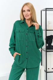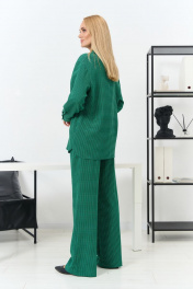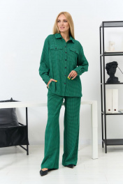 Комплект женский состоит из блузки и брюк. Блузка свободного покроя с воротником на стойке, рукав втачной по низу на манжете, застежка на планке на петли и пуговицы, по переду накладные карманы. Брюки классические, слегка расширенные книзу, на поясе-кокетке, со стрелками, застежка спереди на молнию и пуговицу, по передним половинкам боковые карманы. Ширина по линии груди блузка(44):55см блузка(46):57см блузка(48):59см блузка(50):61см блузка(52):63см блузка(54):65см Ширина по линии бедер блузка(44):57см брюки(44):49см блузка(46):59см брюки(46):51см блузка(48):61см брюки(48):53см блузка(50):63см брюки(50):55см блузка(52):65см брюки(52):57см блузка(54):67см брюки(54):59см Ширина по линии талии брюки(44):37,5см брюки(46):39,5см брюки(48):41,5см брюки(50):43,5см брюки(52):45,5см брюки(54):47,5см Длина изделия блузка-71см брюки-112см Длинна рукава 58см