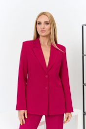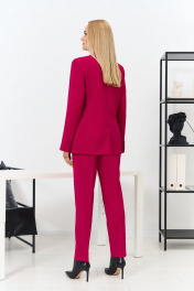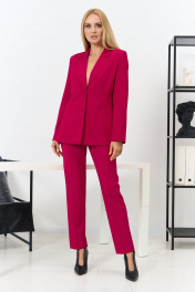 Комплект женский брючный, состоит из жакета и брюк. Жакет полуприлегающего силуэта с центральной застежкой на пуговицы, с отложным воротником с лацканами, по переду вытачки, рельефы, рукав втачной 2-шовный со шлицей по низу рукава, по переду прорезные карманы с "листочкой", спинка со средним швом, по низу шлица, изделие на подкладке. Брюки классические зауженные книзу, на поясе-кокетке, со шлевками, 7/8 длинны, со стрелками, застежка спереди на молнию и пуговицы, по переду боковые карманы. Ширина по линии груди жакет(44):49см жакет(46):51см жакет(48):53см жакет(50):55см жакет(52):57см жакет(54):59см жакет(56):61см жакет(58):63см жакет(60):65см Ширина по линии бедер жакет(44):52см брюки:49см жакет(46):54см брюки:51см жакет(48):56см брюки:53см жакет(50):58см брюки:55см жакет(52):60см брюки:57см жакет(54):62см брюки:59см жакет(56):64см брюки:61см жакет(58):66см брюки:63см жакет(60):68см брюки:65см Ширина по линии талии брюки(44):37см брюки(46):39см брюки(48):41см брюки(50):43см брюки(52):45см брюки(54):47см брюки(56):49см брюки(58):51см брюки(60):53см Длина изделия (44-48): жакет-70см брюки-100см (50-54): жакет-72см брюки-101см (56-60) жакет-74см брюки-101см Длинна рукава 63см