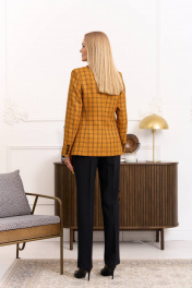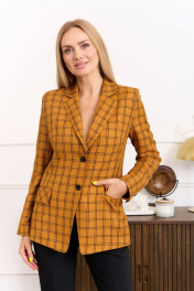 Комплнект женский, состоящий из жакета и брюк. Жакет прилегающего силуэта с вертикальными рельефами от проймы по переду и спинке, с отложным воротником, с застёжкой спереди на петли и пуговицы, рукав вточной 2-х шовный со шлицей, по переду карманы с клапаном. Изделие на подкладке. Брюки прямые, зауженные к низу, на поясе-кокетке с застёжкой спереди на молнию и пуговицу, с боковыми карманами, со стрелками и шлёвками. Ширина по линии груди жакет(42):45см жакет(44):47см жакет(46):49см жакет(48):51см жакет(50):53см жакет(52):55см Ширина по линии бедер жакет(42):50см брюки:47см жакет(44):52см брюки:49см жакет(46):54см брюки:51см жакет(48):56см брюки:53см жакет(50):58см брюки:55см жакет(52):60см брюки:57см Ширина по линии талии брюки(42):35см брюки(44):37см брюки(46):39см брюки(48):41см брюки(50):43см брюки(52):45см Длина изделия жакет-67см брюки-105см Длинна рукава 62,5см