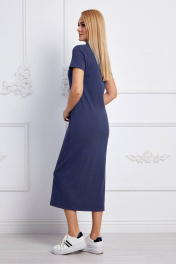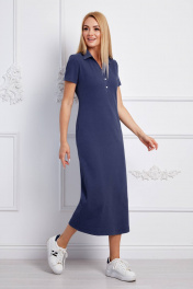 Платье женское из трикотажного полотна. Удлинённое, полуприлегающего силуэт, с коротким рукавом, воротник рубашечный на стойке с планками застёжки -из однотонной ткани.