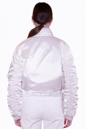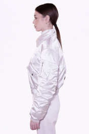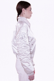 Трендовый бомбер, выполненный из плащевой ткани с пропиткой от влаги и ветра, в жемчужном благородном цвете с металлической застёжкой-молнией и карманами по переду с металлическими кнопками. Ультра-модный воротник со съёмным хлястиком на кнопках предусмотренный для ветренной погоды. Рукава с современной сборкой по локтевому шву и функциональным карманом на металлическую застёжку-молнию. Вышивка логотипа бренда BIRUK выполнена современными нитями, которые добавляют "блеска" и эксклюзивности бомберу. Фурнитура премиум качества, не ржавеет, не меняет цвет, выдерживает многократную машинную стирку.