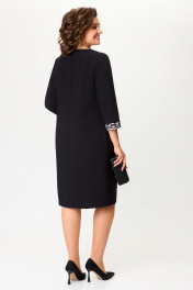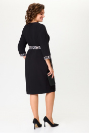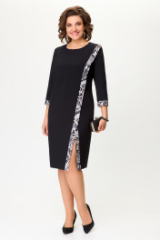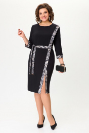 Женское платье полуприлегающего силуэта выполнено из однотонной гладкой плательно-костюмной ткани с отделкой из крепа с анималистическим принтом. Перед с нагрудной вытачкой справа и рельефом от плечевого шва до низа слева, заканчивается разрезом,в шов вставлена планка из декоративной ткани.Спинка со средним швом и талиевыми вытачками. Рукава втачные двухшовные, по низу на притачных манжетах из декоративной ткани.Платье укомплектовано поясом из отделочной ткани с одной стороны и основной ткани с другой, на концах декоративные зажимы.