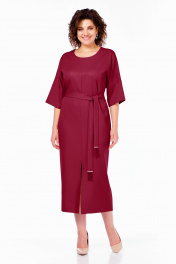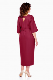 Женское нарядное платье выполнено из плательно-костюмной однотонной ткани с блестящим напылением. Перед со средним швом, заканчивающимся разрезом.Спинка цельная.Рукава цельнокроеные с широкими двойными манжетами, длиной 3/4.Вырез горловины по переду круглый ,а по спинке V-образный с планкой и декоративной пластинкой, обработан обтачками. Платье укомплектовано поясом-завязкой из основной ткани с декоративной металлизированной бахромой на концах. Высота разреза: 39см
