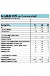Женский двухпредметный костюм состоит из свободного джемпера и юбки с интригующим разрезом спереди слева.Костюм выполнен из трикотажного полотна в мелкий рубчик ,как вельвет,в 3-х цветах. Джемпер силуэта "летучая мышь ". Перед с диагональными подрезами,состоит из трёх частей разного цвета. Вырез горловины V-образный. Плечи спущены. Спинка цельная . Низ джемпера на двойном притачном поясе. Рукава длиной 3/4 ,низ на широких притачных манжетах. Юбка прямая, длиной до середины икры, спереди складка,которая заканчивается шлицей. Юбка на цельнокроеном поясе с резинкой по кругу. Юбка на трикотажной подкладке.