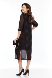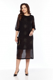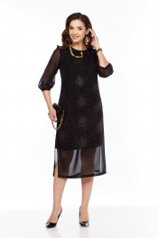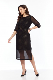 Нарядное женское платье прямого силуэта, с пикантными разрезами по бокам, выполнено из шифона с золотым принтом.Перед с нагрудными вытачками из пройм.Спинка цельная.Рукава втачные одношовные длиной 3/4,низ присборен на резинку.Платье на подкладке из однотонного шифона. Платье укомплектовано ремнем из искусственной кожи.