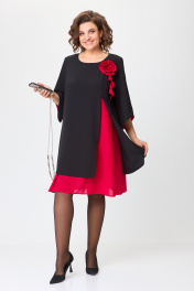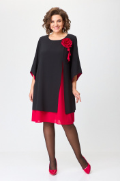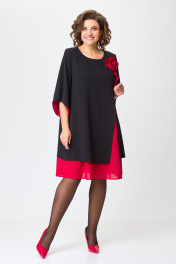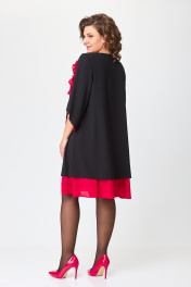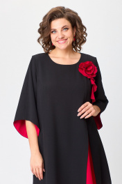 Нарядное расклешённое платье с отделкой и разрезом БАГРЯНИЦА 3154 черный+красный