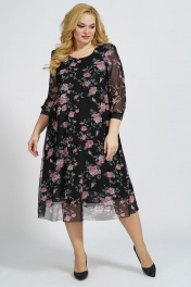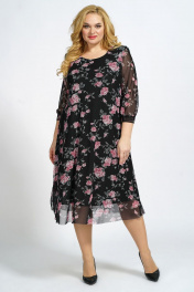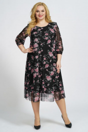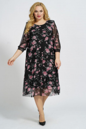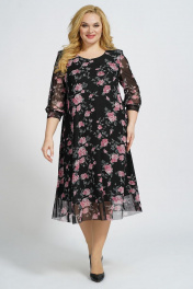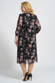 Платье А-силуэта на подкладке из сетки и трикотажа БАГРЯНИЦА 5049 черно-розовый