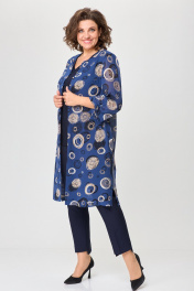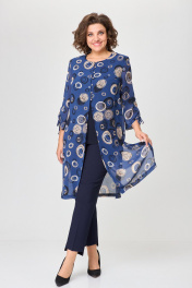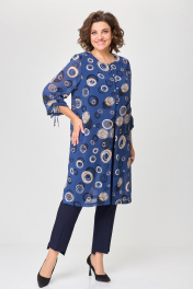 На каждый день костюм туника топ и брюки из текстиля и шифона БАГРЯНИЦА 5050 синий/круги