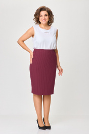 Элегантный женский костюм тройка, состоящий из жакета, топа и юбки. Жакет полуприлегающего силуэта с застежкой на декоративную пряжку, частично на подкладке. Полочка с горизонтальными подрезами в области линии талии. Подрез с настрочным поясом-обманкой на пряжке. Рельефы по полочке доходят до линии подреза. Воротник пиджачного типа. Спинка со средним швом и рельефами выходящими из проймы. Рукав двухшовный с отложной манжетой, длиной 7/8. Юбка прямая, слегка заужена к низу, на подкладке. Верх юбки обработан поясом на частичной резинке. Застежка на тесьму-молнию и пуговицу. По переду имеются кокетки с листочками. Топ с круглой горловиной с кокеткой, с декоративным элементом. Спинка со средним швом. По низу топа имеются разрезы. Комплект тройка: жакет, топ и юбка – это идеальное решение для тех, кто ценит стиль и комфорт в повседневной жизни. Этот изысканный набор подходит как для деловых встреч, так и для вечерних выходов, позволяя вам выглядеть безупречно в любой ситуации. Жакет выполнен из качественного материала и отлично сидит по фигуре, подчеркивая достоинства вашего силуэта. Его лаконичный дизайн и удобный крой делают его универсальным элементом, который легко сочетать с различными вещами. Топ в комплекте выполнен из легкой и воздушной ткани, обеспечивая комфорт и свободу движений. Он может быть как классическим, так и с модными акцентами, что позволяет создавать разнообразные образы. Юбка завершает комплект, придавая ему женственность и элегантность. Ее длина и фасон подходят для любого типа фигуры, гармонично сочетаясь с жакетом и топом. Обновите ваш гардероб с помощью этого стильного и многофункционального трио!