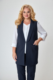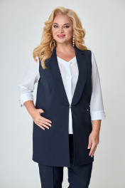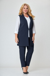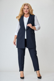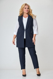Деловой комплект из топа, жакета и брюк с резинкой БАГРЯНИЦА 5057 синий