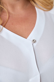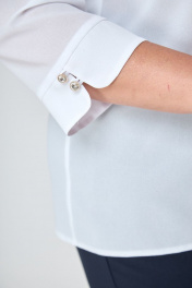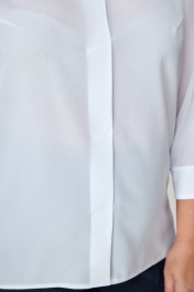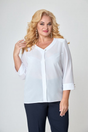 Комплект женский состоящий из жилета, блузки и брюк. Жилет полуприлегающего силуэта, удлиненный, с воротником пиджачного типа. Застежка встыкна 1 крючок. По переду имеются бочки, которые доходят до подреза. В бочках обработаны карманы с листочками. Спинка с рельефами из плечевого. Жилет на подкладке. Блузка полуприлегающего силуэта с симметричным низом. Горловина V-образной формы. Перед со средним швом и декоративной складкой-иммитацией застежки с отделочными фиксирующими закрепками и навесной петлей и отделочной пуговицей. Спина со средним швом. Рукав втачной одношовный, с манжетой с закругленными концамии навесными петлями и пуговицами. Брюки прямые, слегка заужены к низу. Перед брюк короче чем спинка. По боковым-небольшие разрезы. Пояс притачной, частично на резинке.