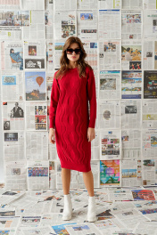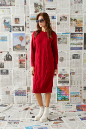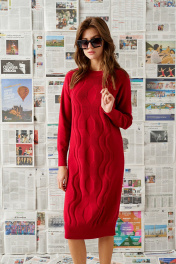 Платье женское, прямого, свободного силуэта. Горловина круглая. Линия плеча спущена, рукав длинный.