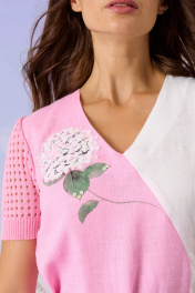 Платье женское, А-образного силуэта, текстильное. Рукав короткий, втачной. По переду изделия расположена печать.