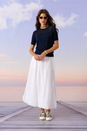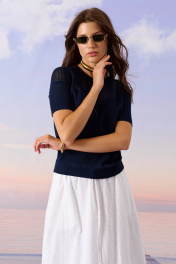 Джемпер женский, прямого, свободного силуэта. Рукав короткий. Горловина округлой формы.