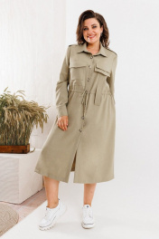 Платье прямое летнее с кулисой и карманами BARBARA B129 хаки