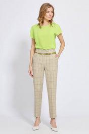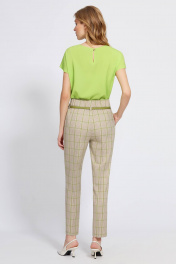 Стильные брюки со стрелками, с посадкой на талии. Модель выполнена из мягкой приятной ткани с добавлением вискозы с интересным сочетанием мелкой «гусиной лапки» с яркой клеткой. Изделие на притачном поясе, частично собранном на эластичную тесьму, застёжкой на молнию и петли-пуговицы и косыми карманами по переду. Короткие шлёвки позволяют дополнить брюки узким ремнём. В пару к изделию можно подобрать жакет из той же линейки для создания готового комплекта.
