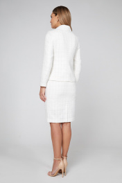 Полуприлегающий силуэт и широкий отложной воротник, сочетающийся с клапанами отделочной тесьмой в виде бахромы, делают этот жакет особенно женственным, а красивые пуговицы с жемчужинами являются тонкими деталями дизайна, придающими изделию особое очарование. Фоном для такого декора была выбрана красивая мягкая однотонная испанская ткань в стиле шанель. Рукава втачные двухшовные. На подкладке.
