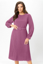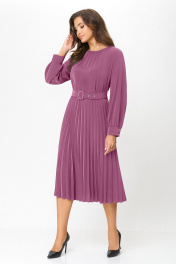 Это красивое платье, идеально подходящее для любого типа фигуры – безупречное предложение для тех женщин, которые любят оригинальную элегантность. Изделие сшили из мягкой,приятной, немнущейся ткани. Модель Х-образного силуэта длины миди, с округлой формой горловины со сборкой по переду и рукавами-реглан, сосборенными по низу манжетами и застёгивающимися на ювелирные пуговицы. В среднем шве спинки лифа обработана застёжка на навесную петлю и пуговицу. Платье привлекает к себе внимание также благодаря плиссированной юбке, придающей фигуре изящные движения. Линия талии акцентирована скрытой резинкой и красиво подчёркнута поясом с пряжкой в тон.