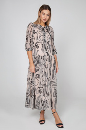 Современное и женственное! Это струящееся свободное платье длины мидакси из польского шифона с щедро расклешенной юбкой обладает очаровательной легкостью. Вместе с интересным абстрактным принтом оно придает особый дух, подчеркивающий Вашу индивидуальность. Модель, с центральной застёжкой на петли и пуговицы, декоративной планкой по горловине со сборкой по переду и укороченными полупрозрачными рукавами, сосбореными по низу эластичной тесьмой и дополненные небольшой сборкой по окату, имеет подкладку из 100% вискозы, благодаря которой Вы будете чувствовать себя комфортно. Идеально подходит для модных образов!