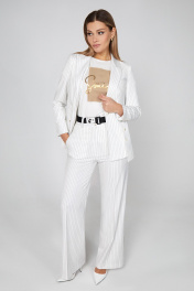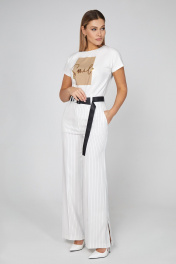 Модное обновление: эти светлые широкие брюки с полосатым узором из эластичной поливискозной испанской ткани привнесут глоток свежего воздуха в ваш гардероб. Современный дизайн в сочетании с модным кроем делают эту базовую модель привлекотельной. Изделие на притачном поясе со шлёвками, собранном на эластичную тесьму по спинке, спереди застёжка на молнию и петли-пуговицы и функциональные косые карманы.Модель дополнена контрастным поясом-тесьмой с пряжками, делающим образ более современным. Идеальный стиль с соответствующим жакетом или блузкой для городского модного образа.