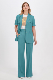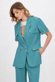 Стильный, элегантный - этот модный жакет с воротником-лацканом, с застёжкой на петли-пуговицы и отделочными клапанами заслуживает вашего внимания. Сочетание пуговиц и отлетные кокетки придают классическим элементам спортивный характер. Шлицы по переду и спинке добавляют лёгкости. Рукава короткие с фигурными манжетами. Смесовый материал на основе льна приятен в носке, а мягкая хлопкавая подкладка обеспечивает комфорт. В пару можно подобрать широкие брюки, вышедшие в той же линейке.