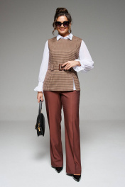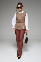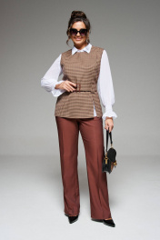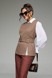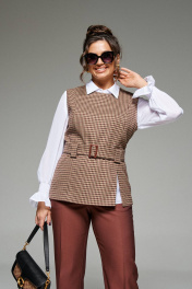Блуза, брюки, жилет Beautiful&Free 6260 мокко+гусиная_лапка