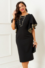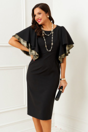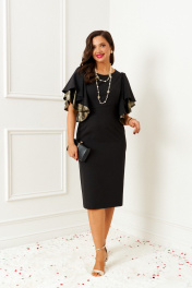 Воплощение вечной классики! Контраст мягкой асимметрии и тонких изгибов, пересечение оттенков и фактур – то самое платье для зимних праздников. Одеваем и наслаждаемся. Платье женское прилегающего силуэта средней длины, выполнено из костюмно-смесового полотна с декоративной отделкой. Перед платья с наклонным подрезом на талии, а также с вертикальными вытачками от него. Спинка разрезная по среднему шву, в верхней части которого вставлена длинная потайная молния, и выполнен разрез, фиксируемый на навесную петлю и пуговицу, а снизу – шлица. Так же на спинке присутствуют две вертикальные вытачки на талии. Горловина овальной формы. Рукав короткий двойной фантазийной формы. Выполнен из двух видов ткани: основной и отделочной.