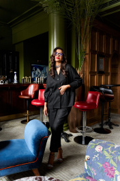 Стильный женский костюм в винтажном стиле дополненный акцентным накладным карманом весьма актуален в будущем сезоне. Предметы костюма можно смело комбинировать по отдельности с другими вещами гардероба. Костюм состоит из 2-х предметов одежды: рубашки и брюк. Выполнен из костюмной ткани стильного дизайна. Рубашка прямого силуэта свободного кроя. Перед из двух симметричных деталей с нагрудными вытачками от бокового шва. Асимметричность изделию придает нижний накладной карман справа фантазийной формы. Спинка цельная. Рукав рубашечный одношовный полной длины с возможностью отворота. Застежка передняя центральная на три прорезные петли и декоративные пуговицы. V-образный вырез горловины. Воротник тип «апаш», цельнокроеный с передом. Брюки прямого силуэта свободные вверху и слегка зауженные к низу, длиной до щиколотки, с двумя верхними боковыми карманами и двумя заложенными глубокими складками от пояса спереди. Высота сиденья классическая. Застежка центральная на молнию и на петлю с пуговицей на поясе. Брюки на притачном поясе, в задней части которого для удобного прилегания по талии вставлена резинка.